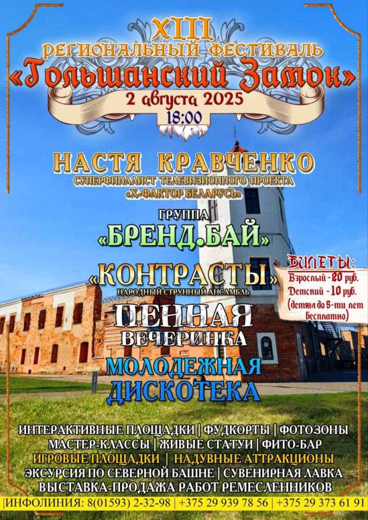 У мястэчку Гальшаны, што ў Ашмянскім раёне, 2 жніўня пройдзе традыцыйны рэгіянальны, ужо 13-ы фэст пад назвай “Гальшанскі замак”. Афіша гэтага свята, на жаль, цалком падрыхтавана на расейскай мове, а цікавага ў праграме менш, чым звычайна. Хедлайнершай музычнай праграмы заяўлена нейкая Настя Кравченко, ажно “суперфиналистка” нейкага тэлевізійнага праекту.