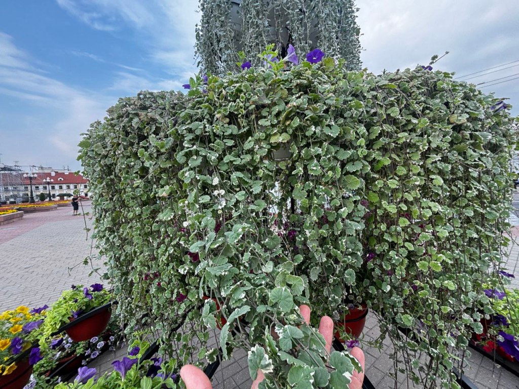 Фантан складаецца з кветак, сярод якіх сурфінія розных відаў і расфарбоўкі, дыхондра сярэбраны водаспад, будра варыягатная, вярбена. На самым версе – мільённая кветка, якой упрыгожылі Гародню.