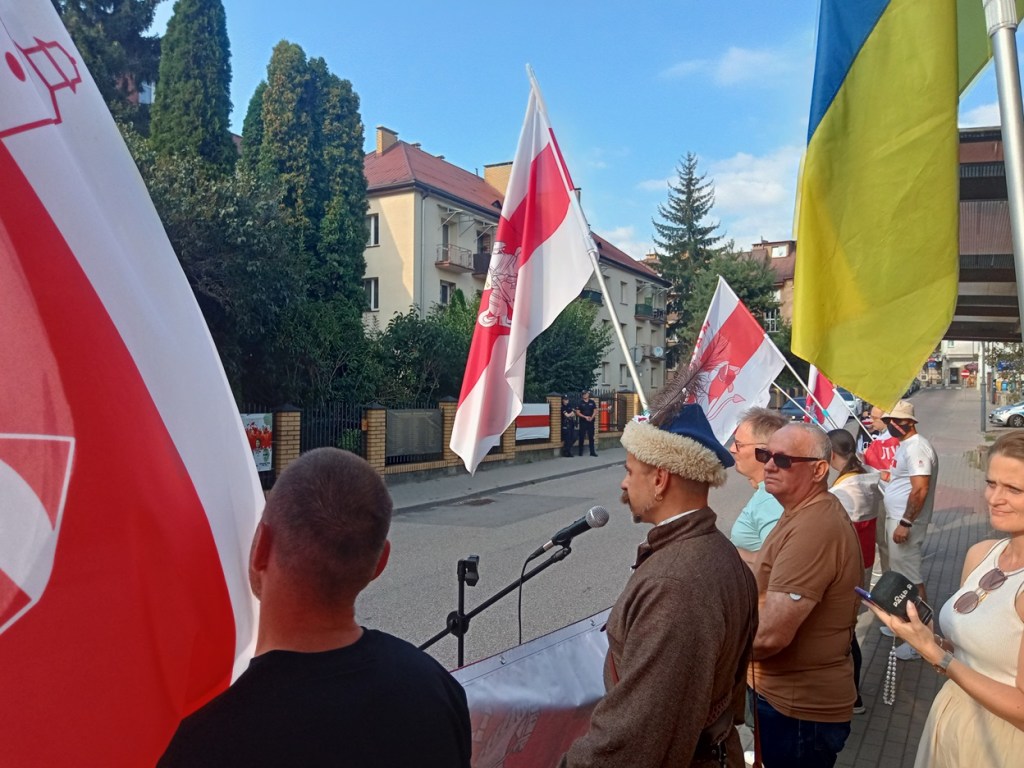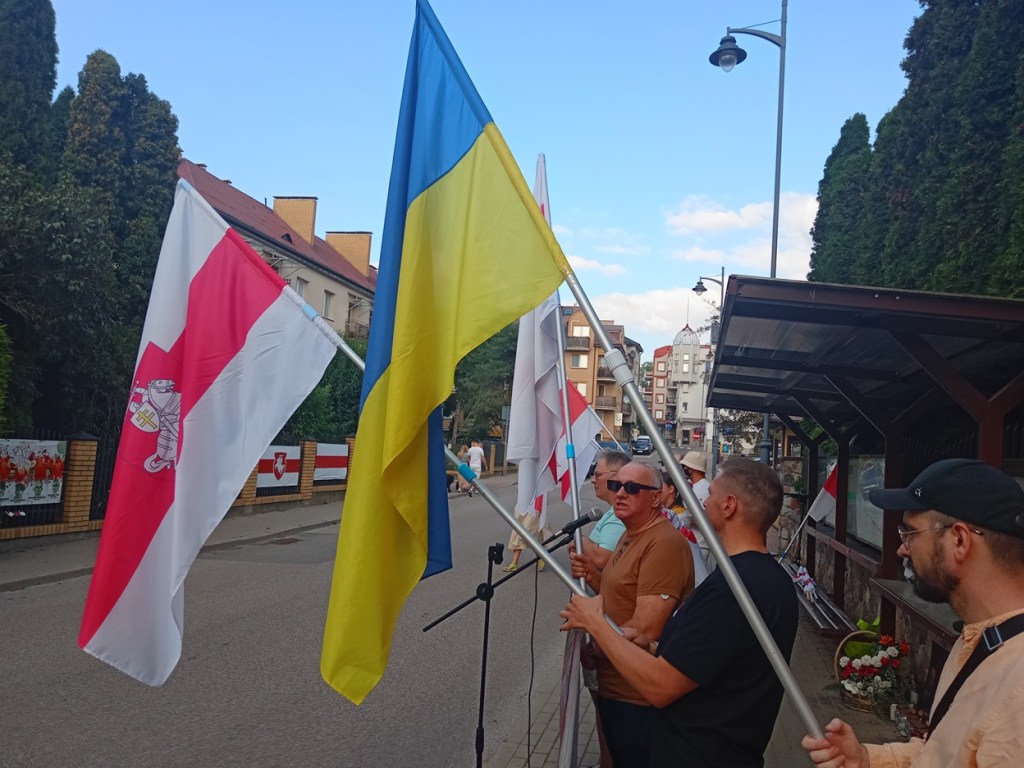 Выступілі Ян Абадоўскі, Яўген Вапа, Сяргей Верамеенка, Васіль Калач, іншыя беларускія грамадскія актывісты, прадстаўнік украінскай дыяспары Антон Галавач. Удзельнікі акцыі неаднаразова скандавалі “Жыве Беларусь!”, “Слава Украіне!”, “Нех жые Польска!”.