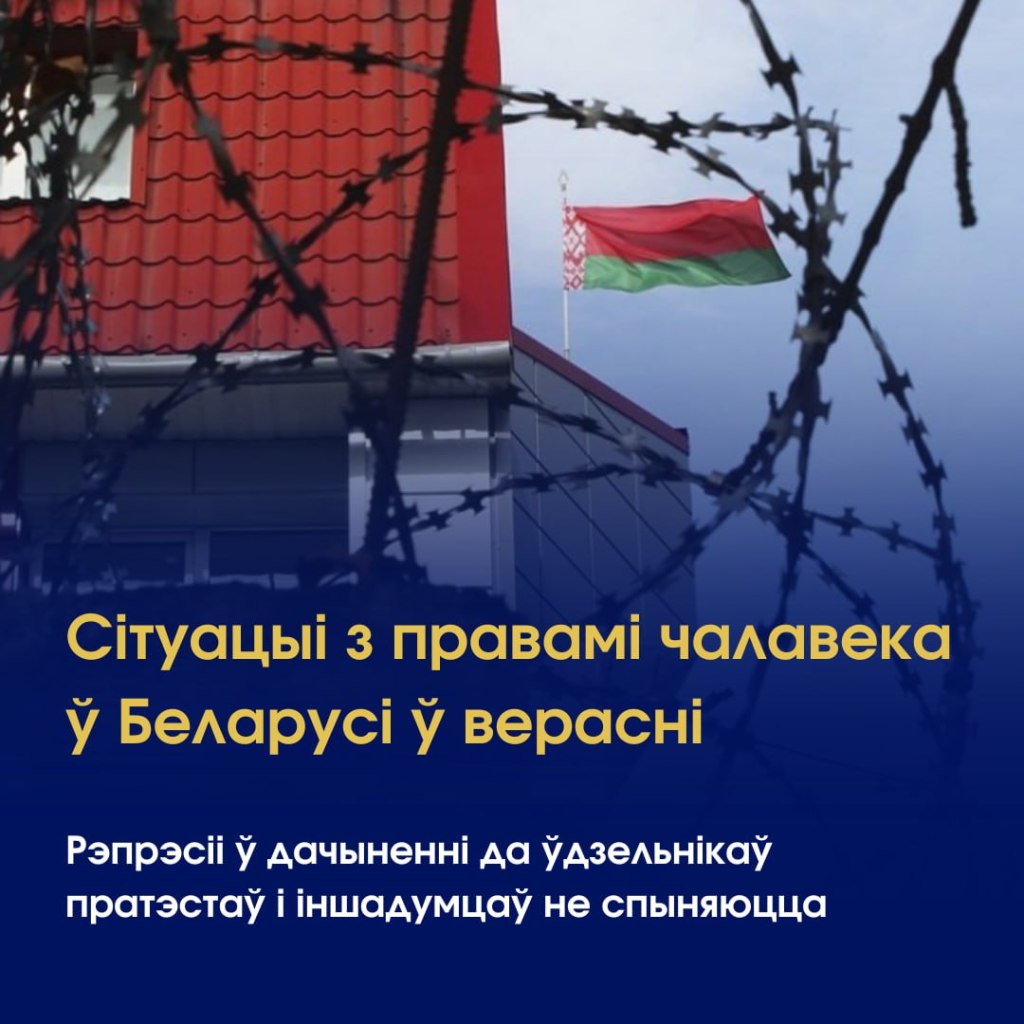 - у верасні 2025 года “Вясна” зафіксавала 96 выпадкаў палітычна матываваных рэпрэсій (у тым ліку затрыманняў, ператрусаў і г. д.), якія вынікаюць з крымінальнага і адміністрацыйнага пераследу;