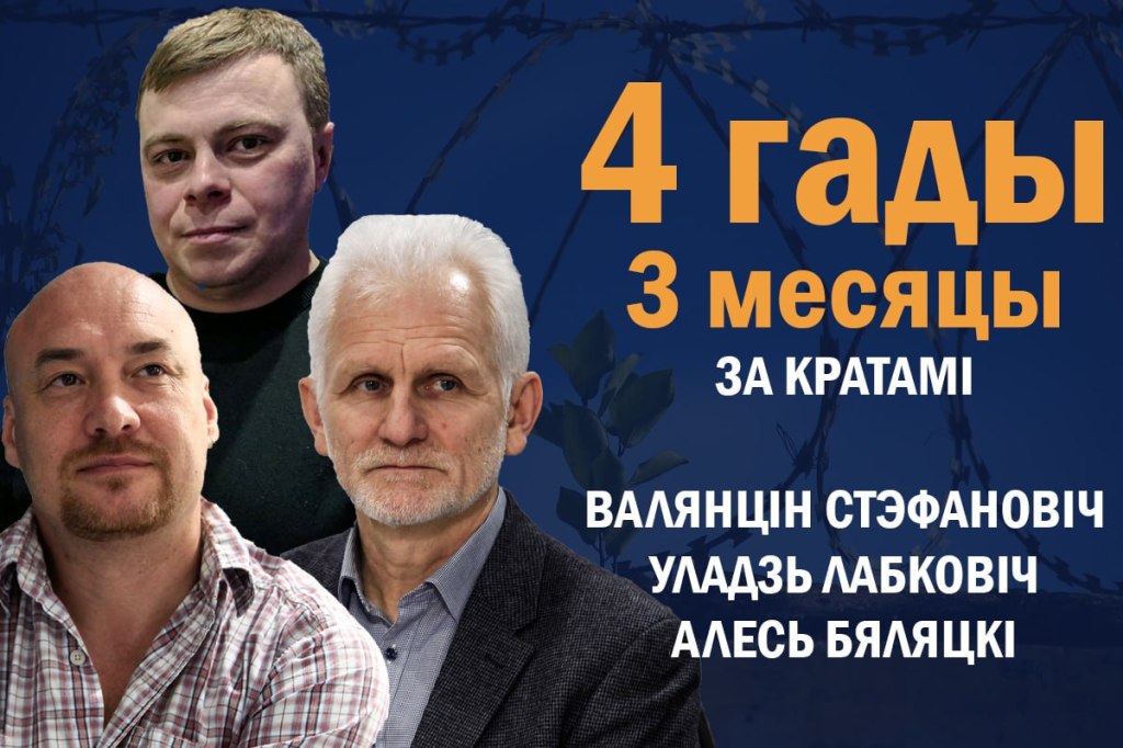 4 гады і 3 месяцы таму затрымалі Алеся Бяляцкага, Валянціна Стэфановіча і Уладзіміра Лабковіча