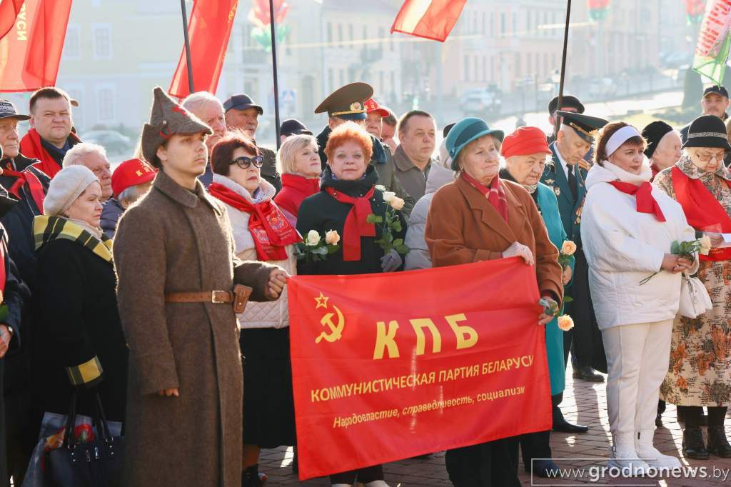 У Гародні “камуністычныя выкапні” 7 лістапада святкавалі угодкі бальшавіцкага Кастрычніцкага перавароту ў Расеі. На цэнтральным пляцы гораду каля помніка Леніну пад камуністычнымі сцягамі сабралася каля трох дзясяткаў прыхільнікаў сацыялістычнай рэвалюцыі.