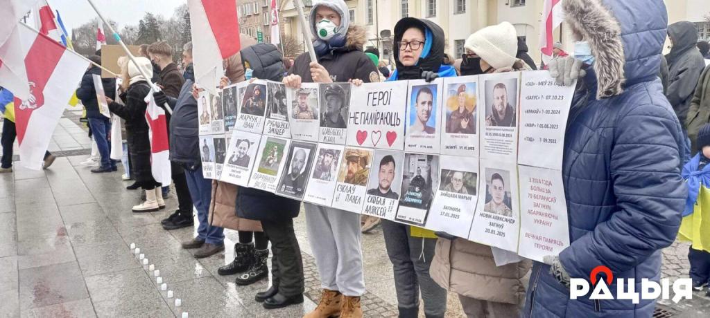 Каля 300 чалавек — украінцы, беларусы і палякі — сабраліся разам, каб ушанаваць ахвяраў вайны і выказаць падтрымку ўкраінскаму народу. Луналі ўкраінскія і бел-чырвона-белыя сцягі.