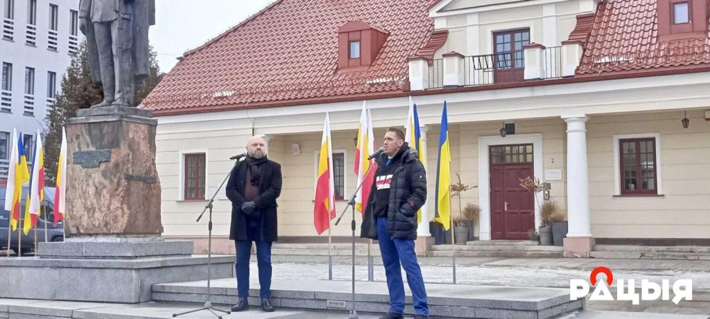 Арганізатар акцыі Ян Абадоўскі распавёў пра важнасць акцыі не толькі для ўкраінцаў, але і беларусаў, падзякаваў прысутным палякам, якія таксама прыйшлі падтрымаць мітынг.