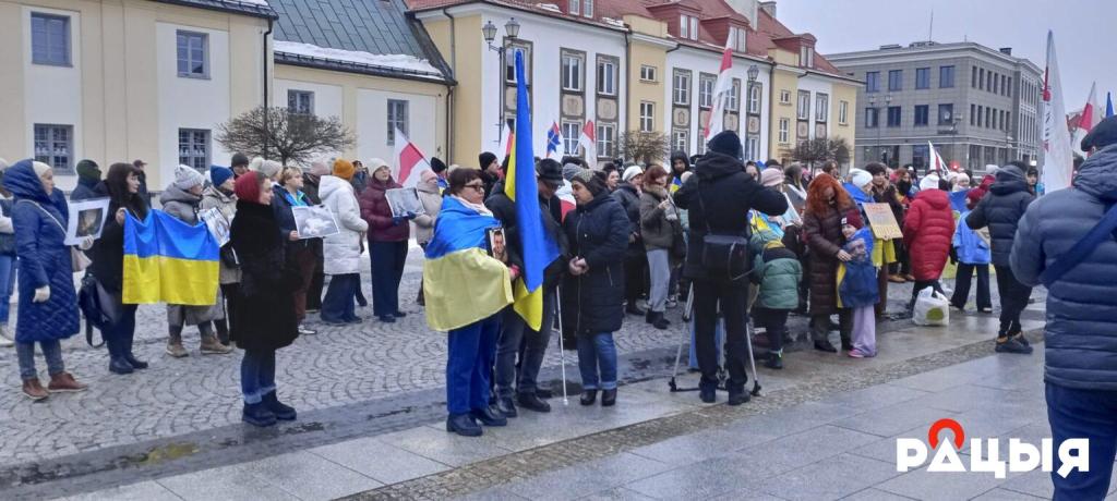 Напярэдадні чацвёртай гадавіны поўнамаштабнай вайны ва Украіне ў цэнтры Беластока прайшоў мітынг беларускай дыяспары і ўкраінскай супольнасці «Разам супраць расейскай агрэсіі». Удзел у ім узялі каля 300 чалавек — украінцы, беларусы і палякі.