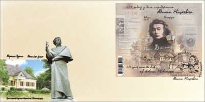 Паштовая марка і канверт да юбілею Адама Міцкевіча
